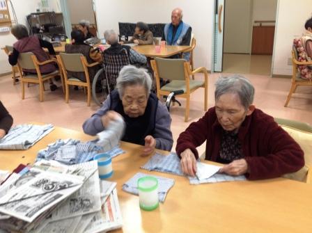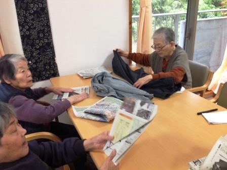 男性職員に利用者の皆さんがサンタの衣装を着せていくゲームです★