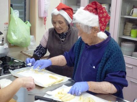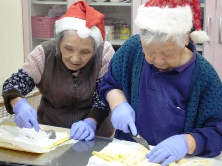 利用者様と一緒にクリスマスケーキを作ってみました(*^_^*)