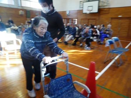 シルバーカーを使ったり歩行器を使ったりいつも通りの歩き方で時間を測ります