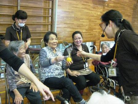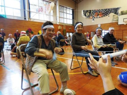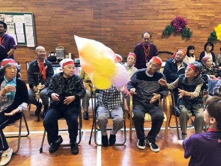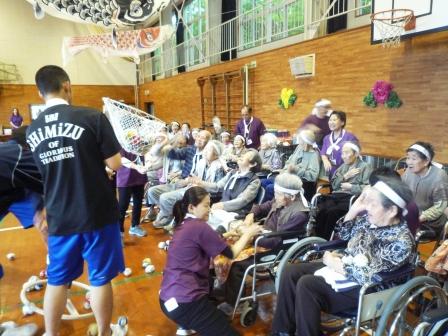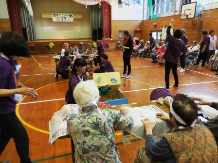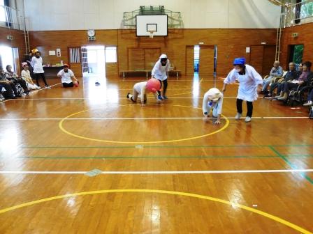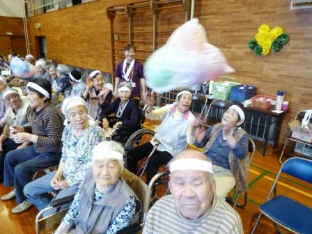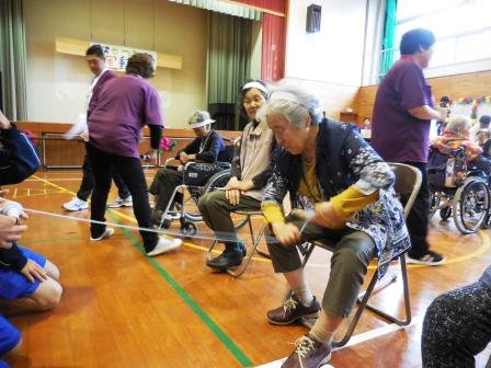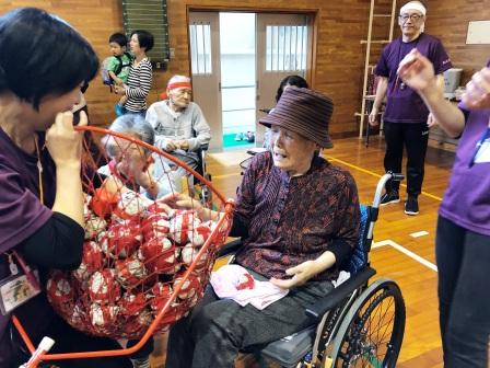 午前の競技開始です。玉入れ・紐つなぎ・バスケットゲーム・風船リレーと皆様真剣にされています。