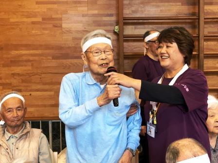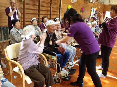 運動会の前に5月の誕生者様紹介を行い、誕生者様代表による運動会の開会宣言をされました。