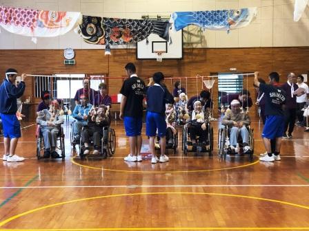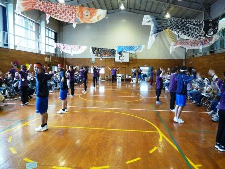 清水高校2年生のボランティアの紹介の後、皆でラジオ体操を行い、