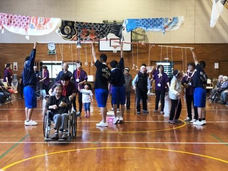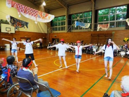 午後の競技前に職員による応援合戦で皆様を盛り上げてから