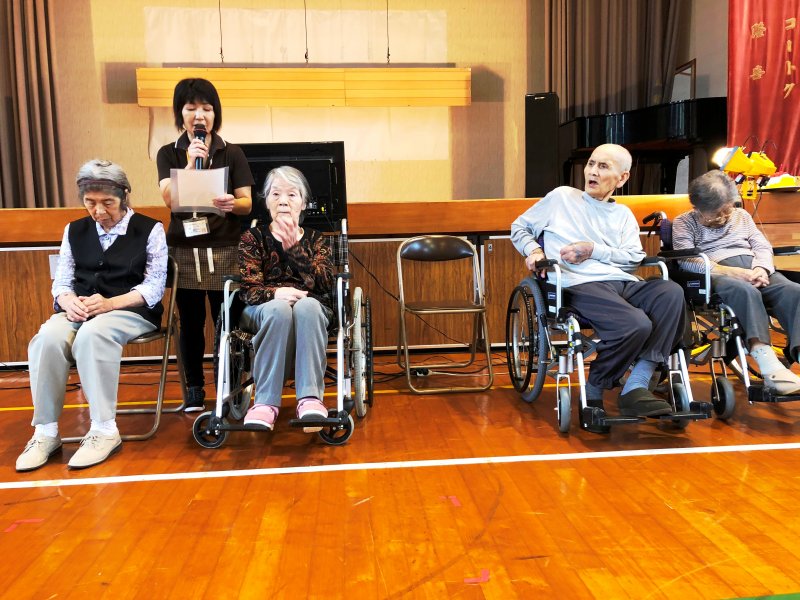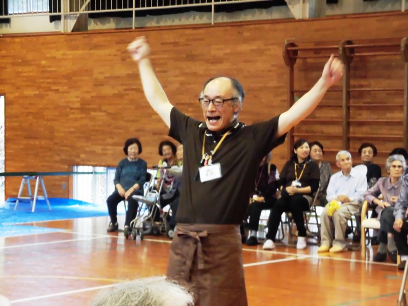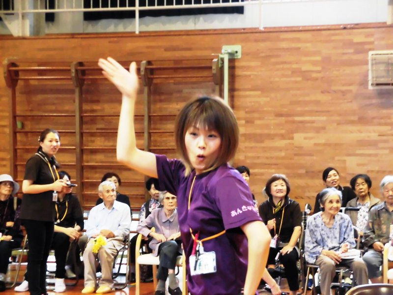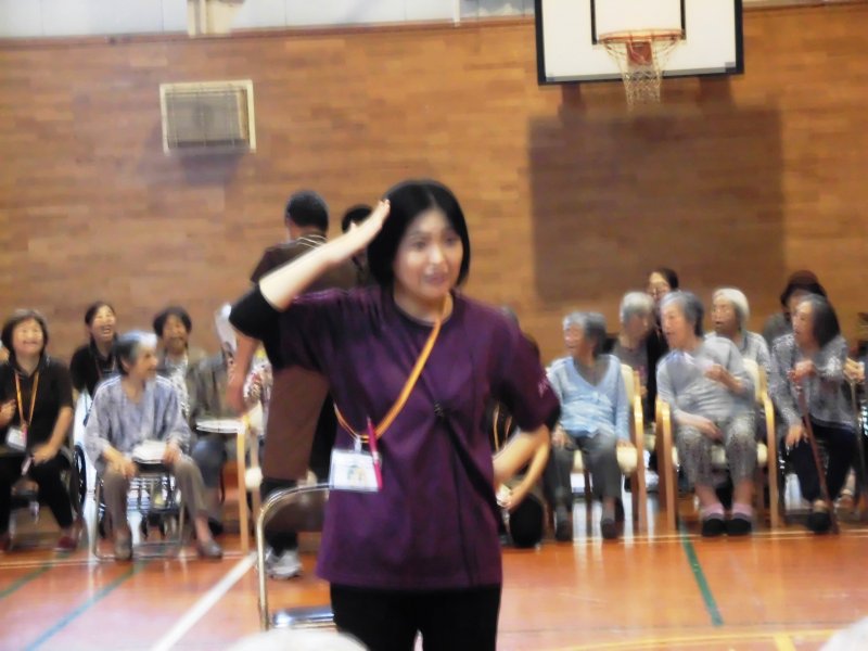 次のゲームは、ジェスチャーゲーム職員がお題をみて、体で表現し、分かったら答えていただくといわけです。