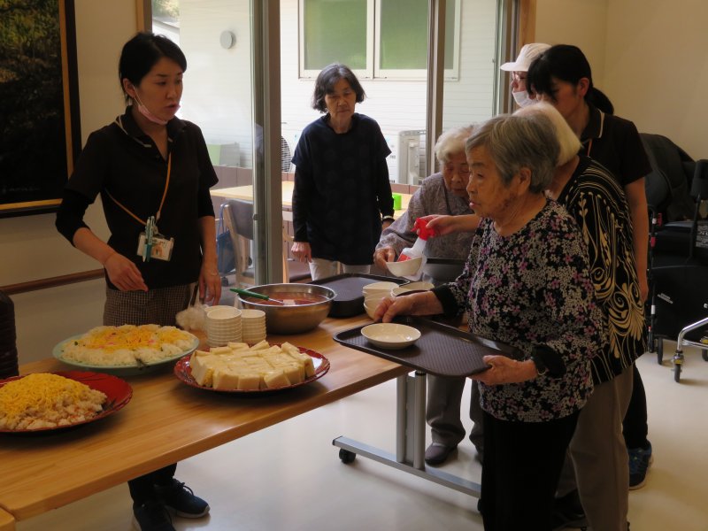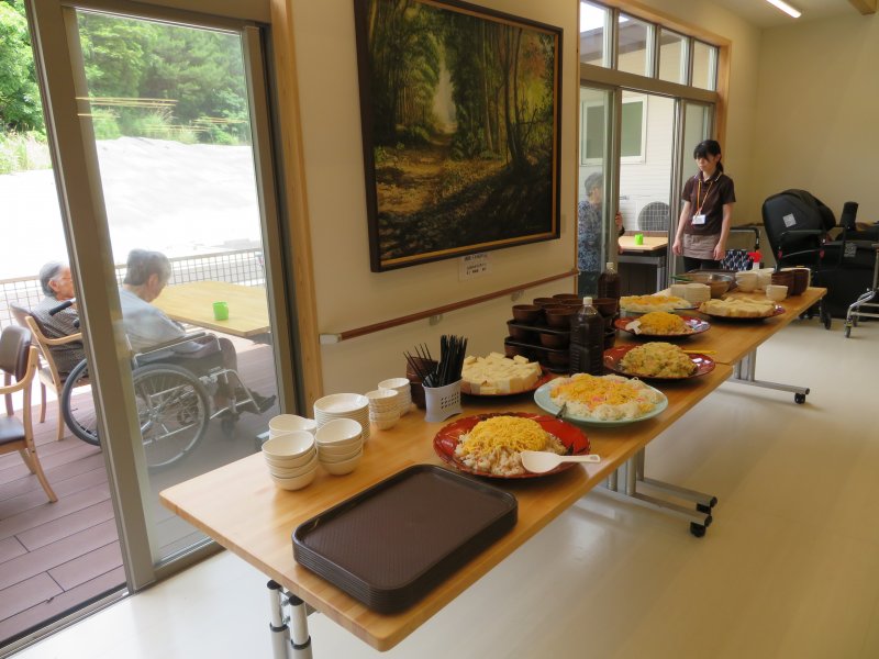 今日の清水ヶ丘は特老の利用者様とデイサービスの利用者様合同で昼食バイキングを行いました( *´艸`)