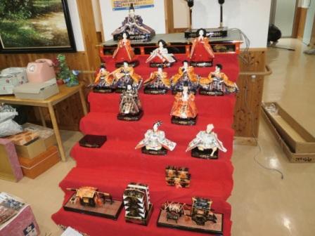 利用者様にも手伝っていただきながらひな壇を組み立てて・・・