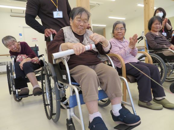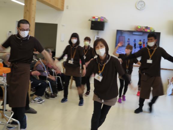 職員の出し物です。この日の為に各自練習してきたサザエさん体操です(*‘∀‘)b