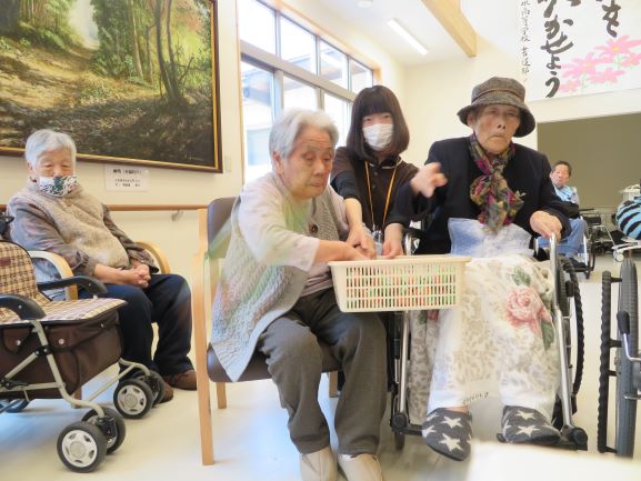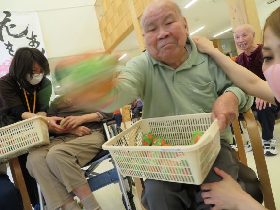 次のゲームは、あんきな家恒例「糸巻きゲーム」と「玉入れ」