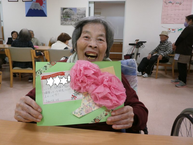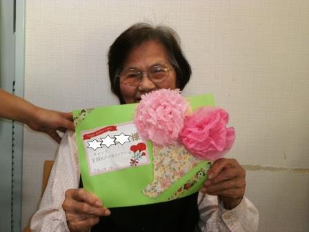 日頃の感謝を込めまして利用者様一人一人にカーネーションのついた