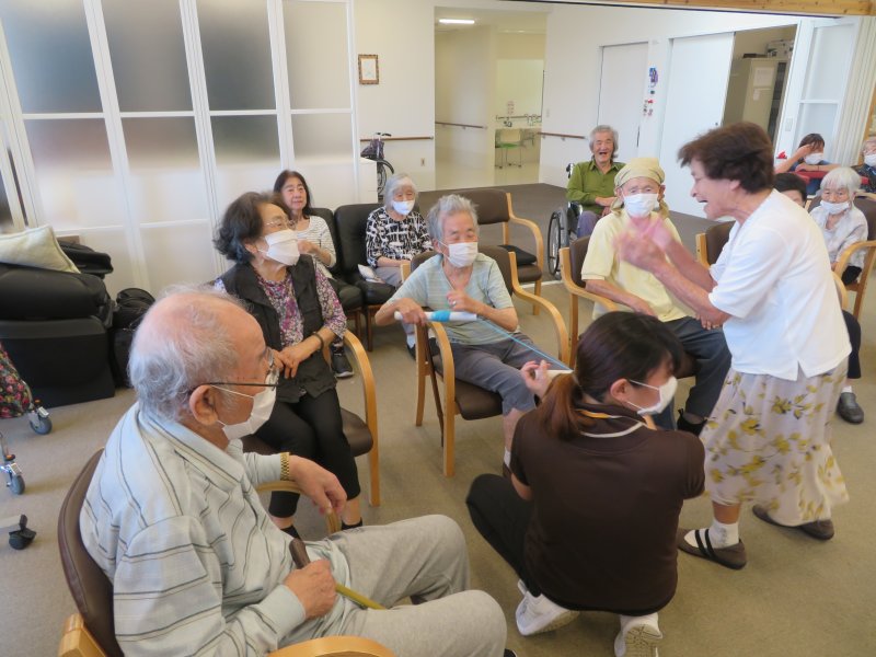色々な懐かしい歌を歌いながら皆で歌に合わせて体操をして体を動かしました。歌に合わせて体を動かすとみんな楽しく運動が行えます💗