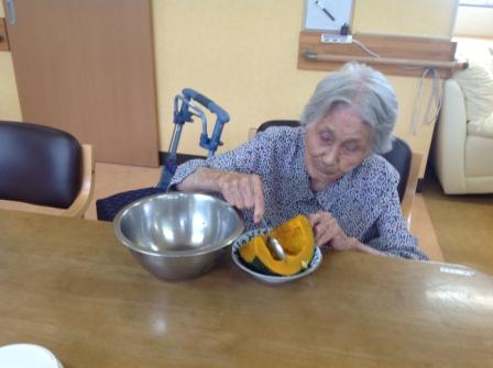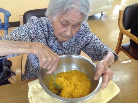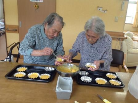 今日の日曜日、グループホームではカボチャのカップケーキ作りに挑戦に(#^.^#)