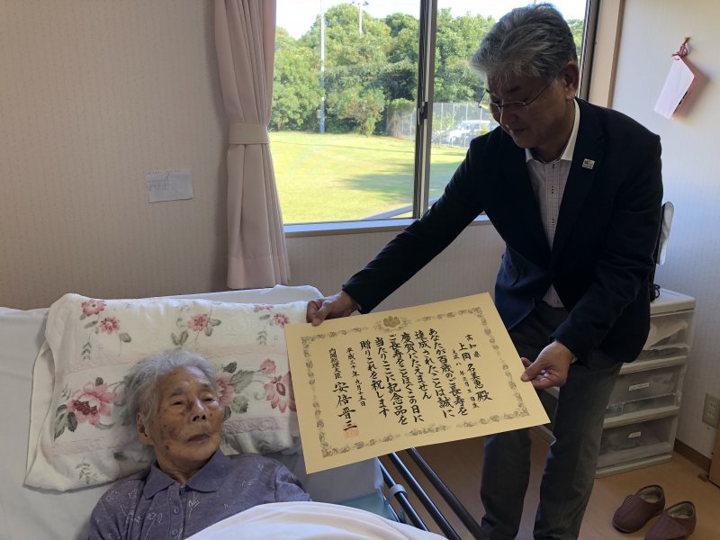 今日は長寿のお祝いに、土佐清水市長の泥谷様が
