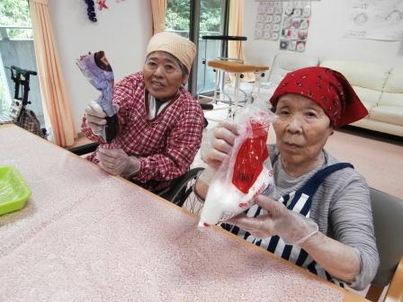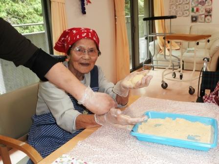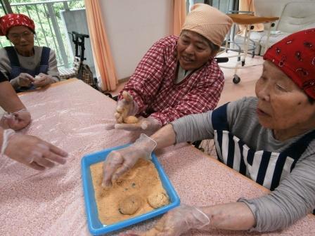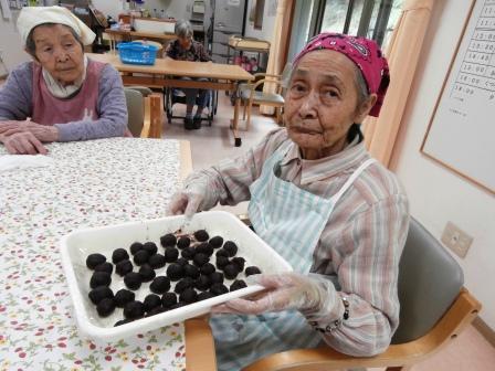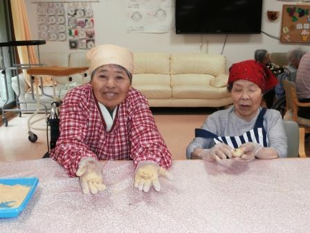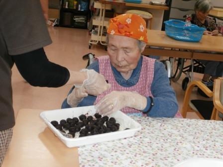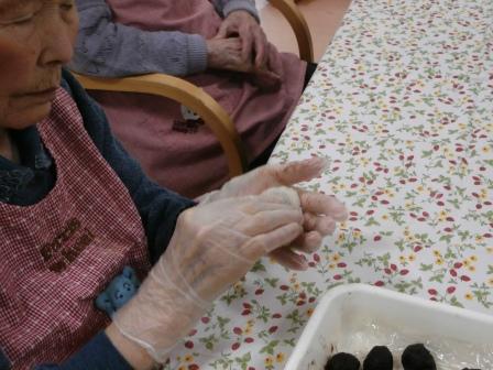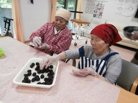 きな粉をまぶすと…おはぎの完成(^_-)-☆
