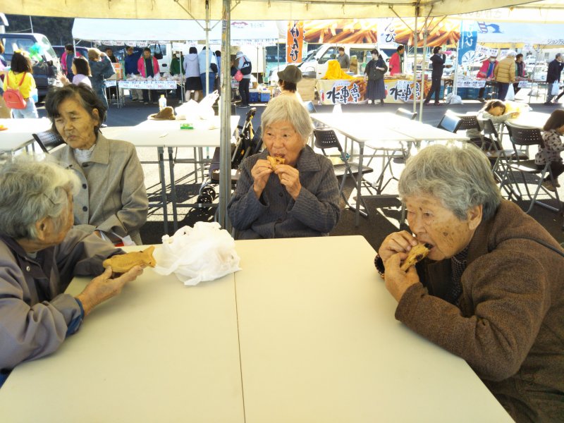 甘栗や揚げたての魚の天ぷらを買われていました。