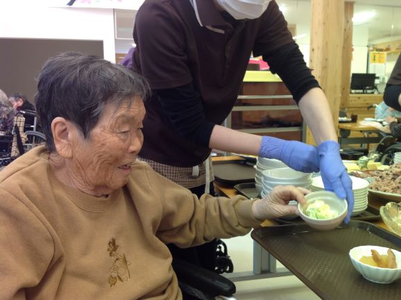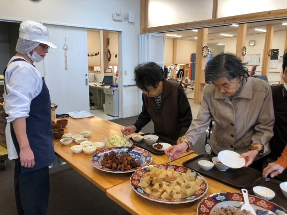 利用者様に好きなおかずを選んで、取って頂きます(*^^*)