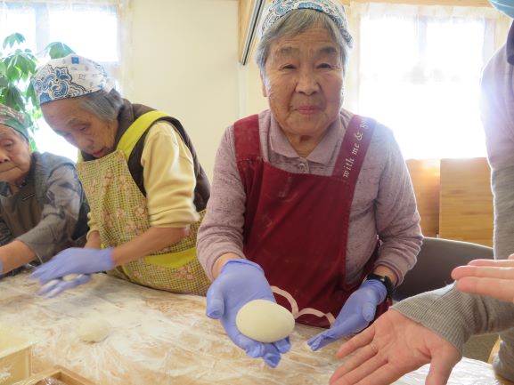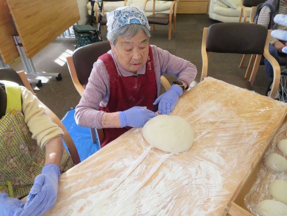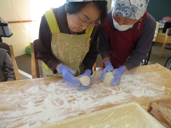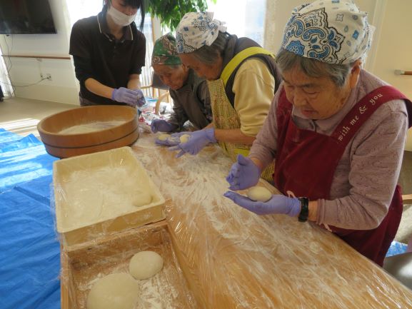 つき上がったお餅は、女性利用者様が慣れた手つきで丸めて下さいました♪♪