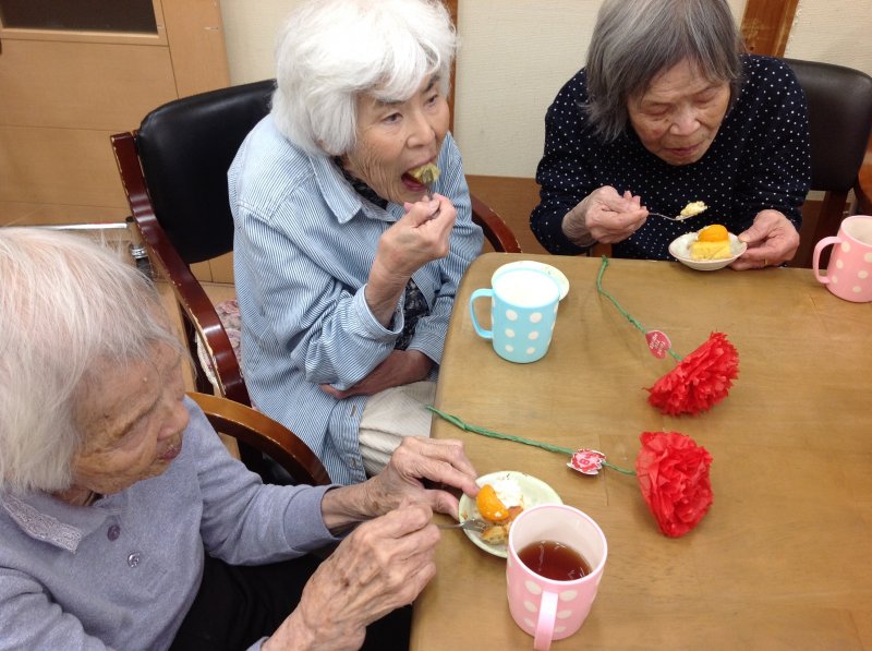 カーネーション贈呈の次はケーキでパーティーです♪