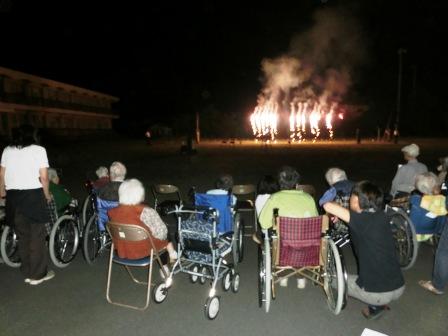 続いては打ち上げ花火。職員による花火師が順番に点火していきます。
