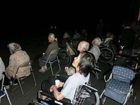 日が暮れるのも早くなってきたので、18時頃からみんな校庭へ集合し、最初は利用者様と職員によるカラオケ大会。