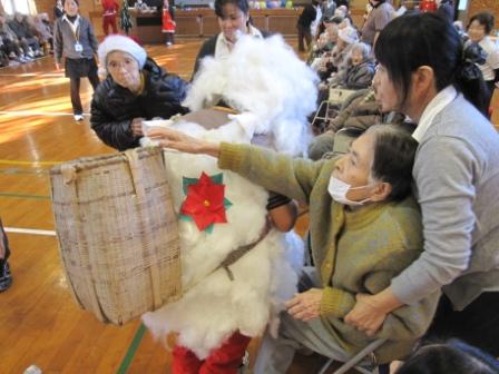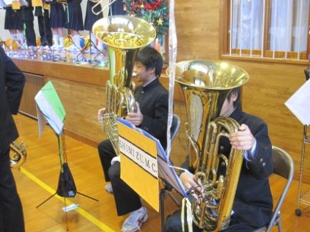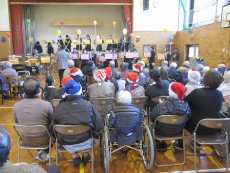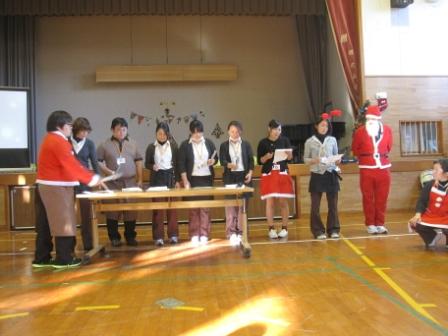 たくさんの楽器を運び、今年の大ヒットした体操の曲や、クリスマスの曲を演奏して頂きました(^0^)そして、演奏後にはあんきな家のサンタさんより中学生、先生にクリスマスプレゼントが☆中身を見て一番喜んでいたのは・・・先生でした(^^;)